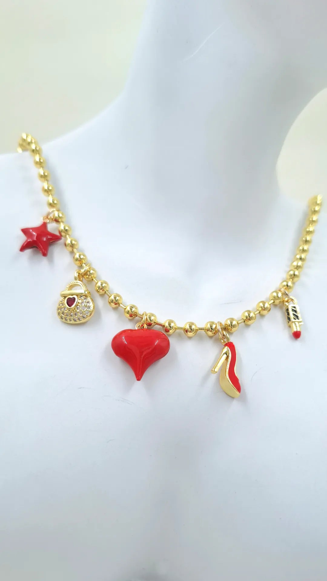 El Collar Charms Fashion es un accesorio moderno y versátil, elaborado en cadena estilo balines de 40 cm de largo con material rodio, que garantiza resistencia y un acabado elegante.