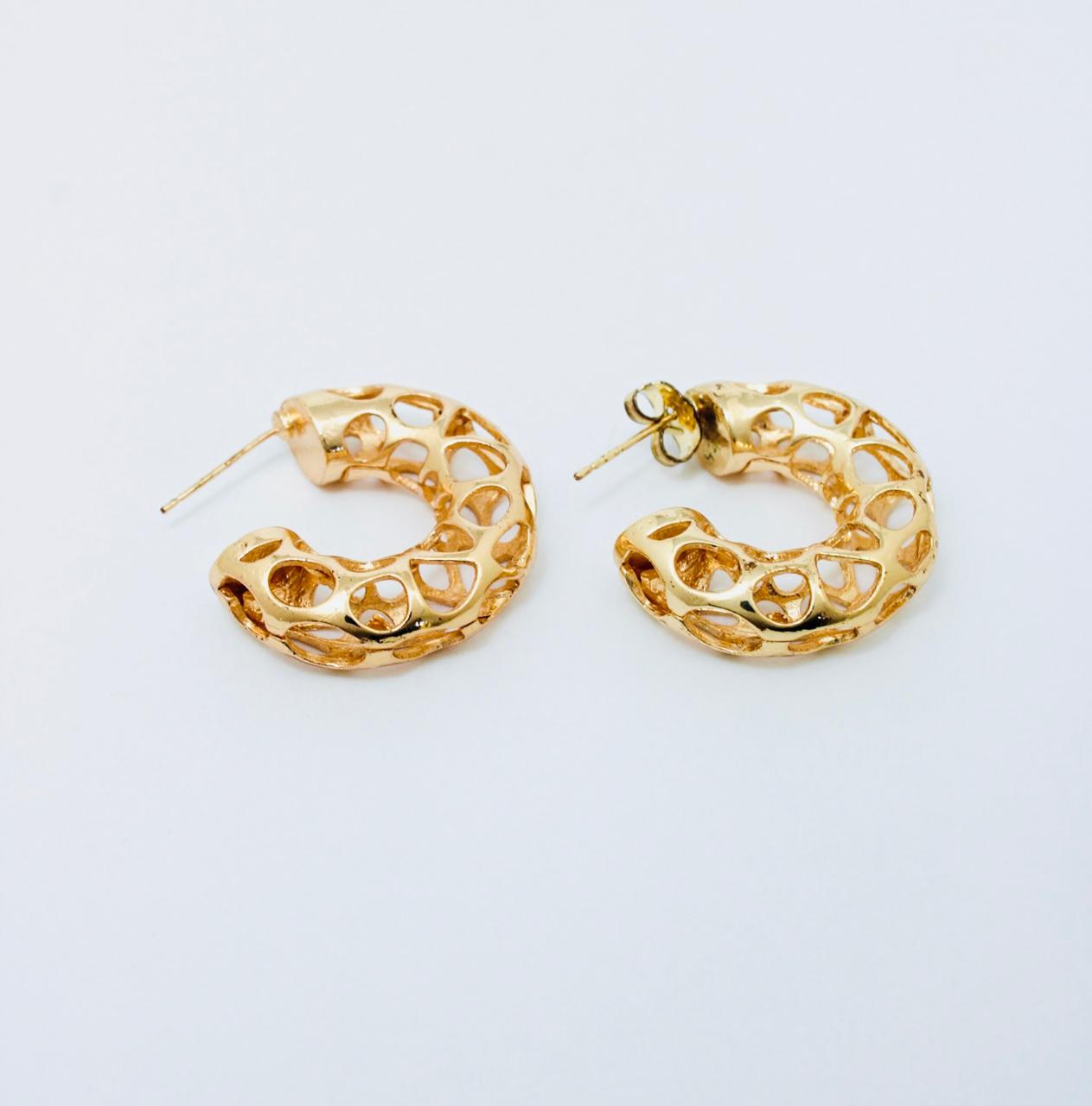 Su cuña metálica tipo mariposa garantiza un ajuste cómodo y seguro, ideal para el uso diario o para ocasiones especiales. Su acabado dorado brillante resalta la forma circular y abierta del diseño, convirtiéndola en un accesorio versátil y atemporal.