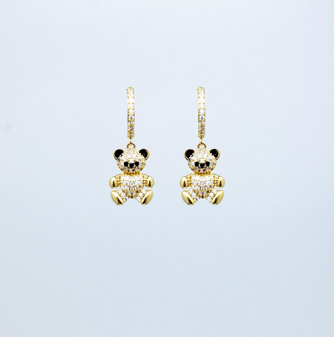 El protagonista es un dije en forma de oso, también decorado con microcircones, que añade un toque juguetón y encantador al diseño. El cierre de golpe tipo aro garantiza seguridad y comodidad, ideal para el uso diario o para complementar looks creativos y femeninos.